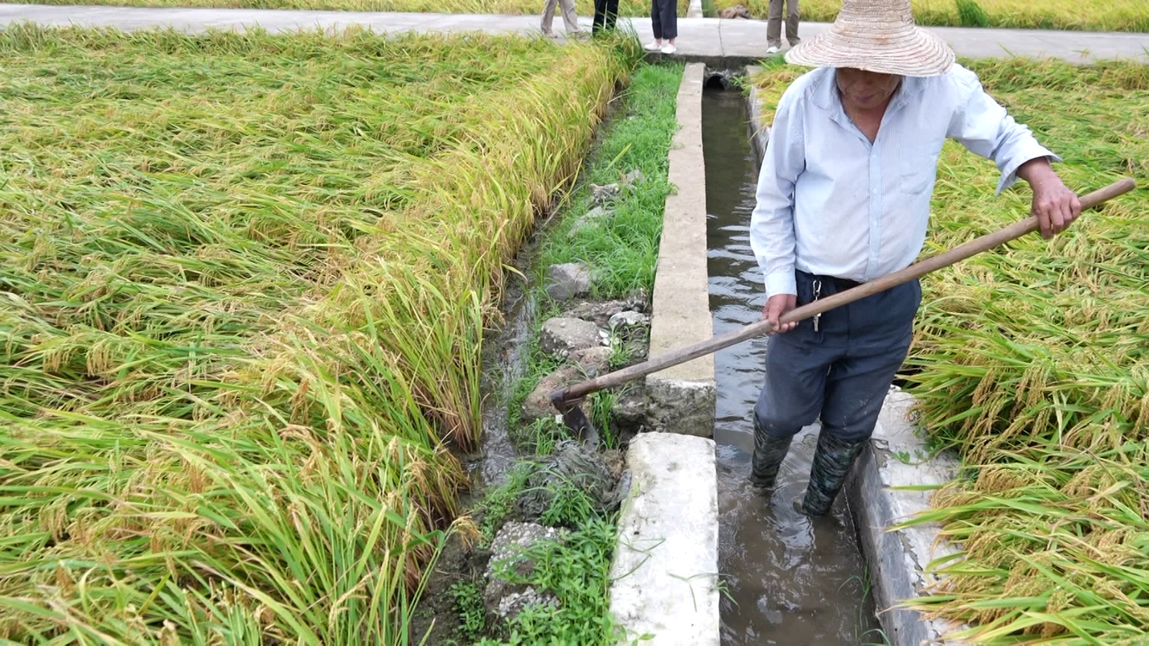 農(nóng)技專家楊煥清來到現(xiàn)場指導(dǎo)農(nóng)戶搶收,“它倒平后很容易會發(fā)芽,稻谷發(fā)芽以后就沒有價值了。現(xiàn)在主要就是開溝排水,一有晴天馬上搶收?!?/p>