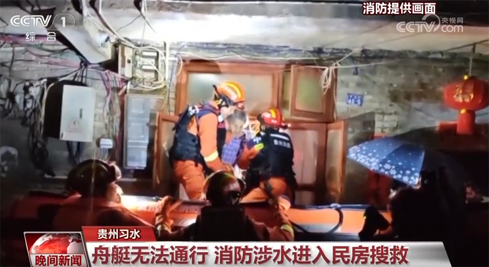 8日晚到9日清晨,貴州遵義習水縣遭遇強降雨襲擊,導致縣城多處低洼地帶積水嚴重,道路被淹、房屋進水,多名群眾被困。當地消防部門展開救援,但因部分地區(qū)通道狹窄,舟艇無法通行,消防人員將繩索系在身上,涉水進入民房展開搜救。