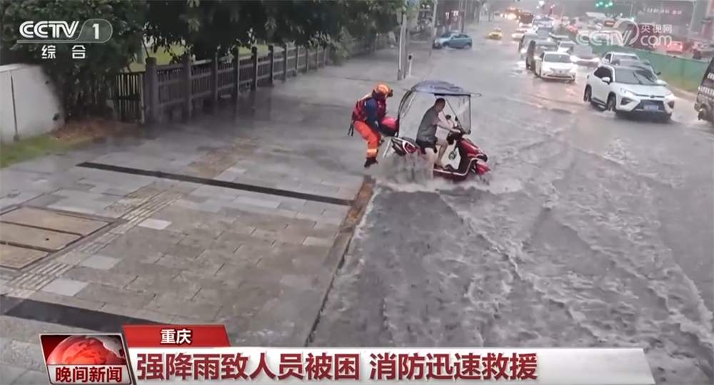重慶也受到強降雨的影響。在大渡口區(qū)鋼花路紅樓醫(yī)院附近,消防人員發(fā)現一名摩托車騎手被困水中,有被沖走的危險。經過救援,該男子被轉移至安全地帶。據介紹,目前,大渡口區(qū)消防救援局共處置相關警情16起,出動130余人次參與救援工作。