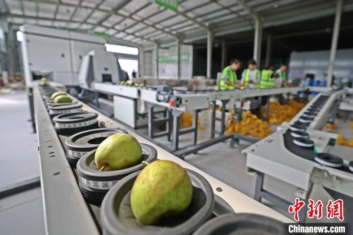 在鎮(zhèn)上新建的百里洲砂梨智慧產(chǎn)業(yè)園,園內(nèi)的精細化檢測分選設備令人眼前一亮:自動化分選線上,每顆砂梨都要通過“X光體檢”,重量、糖度、黑心等內(nèi)部指標合格方能進入包裝環(huán)節(jié)。