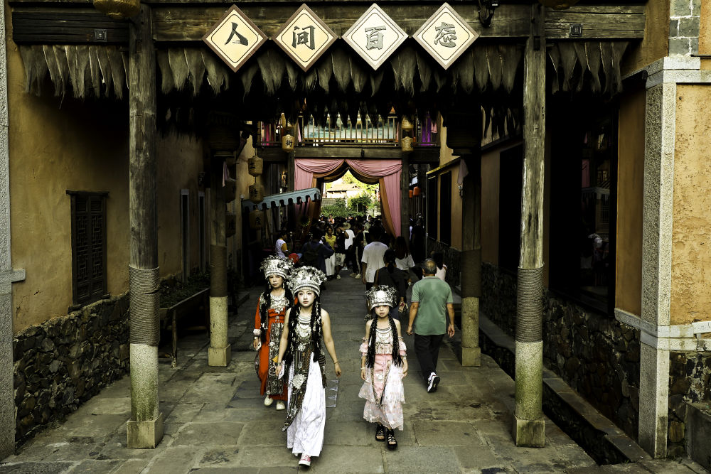 夜幕降臨,記者隨“活力中國調(diào)研行”采訪團來到景區(qū),遠處懸崖燈火璀璨,如影視劇一般的場景在眼前浮現(xiàn)。游客或沉浸式體驗情景劇、舞蹈劇、雜技等演出,或身著古裝拍照打卡,在熱鬧的氛圍里感受“仙俠世界”的浪漫。