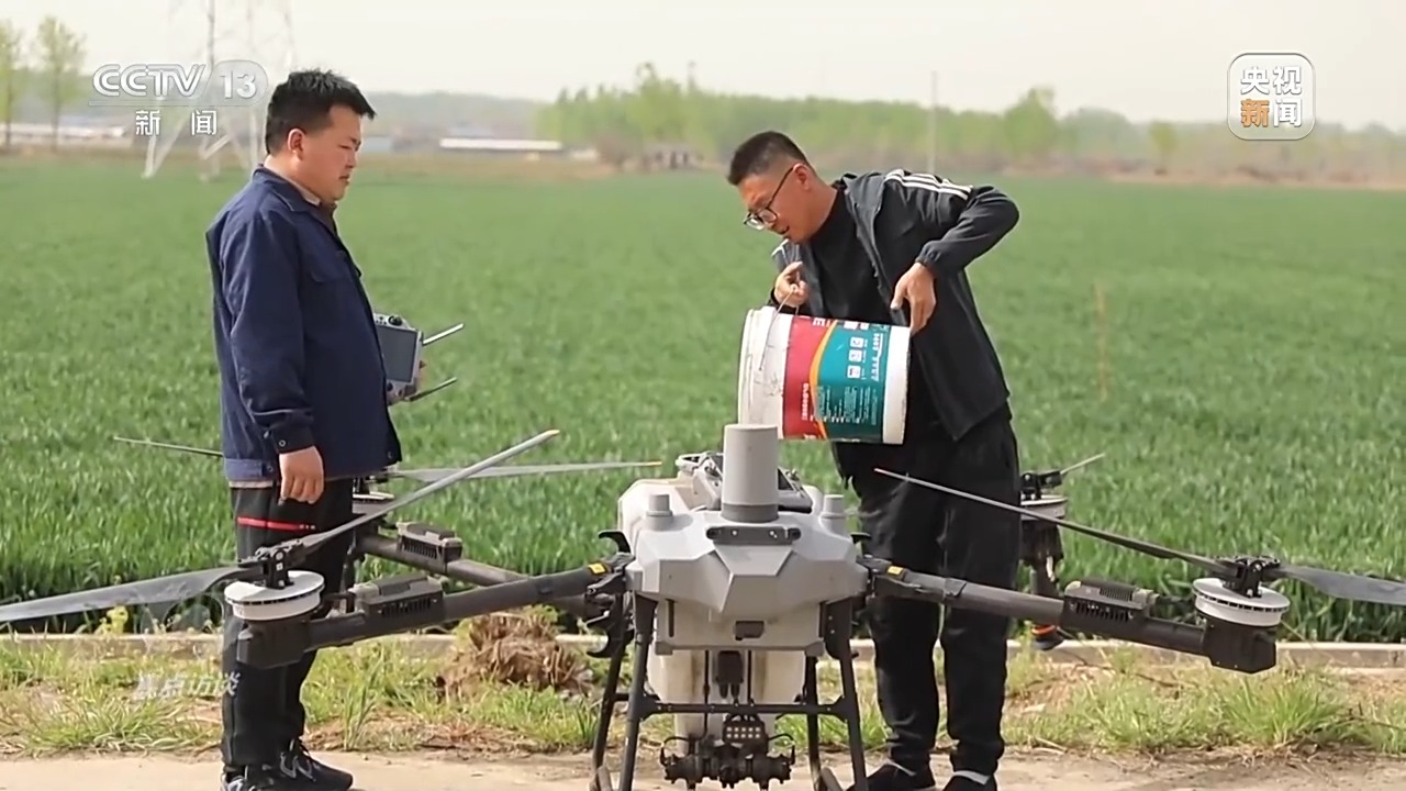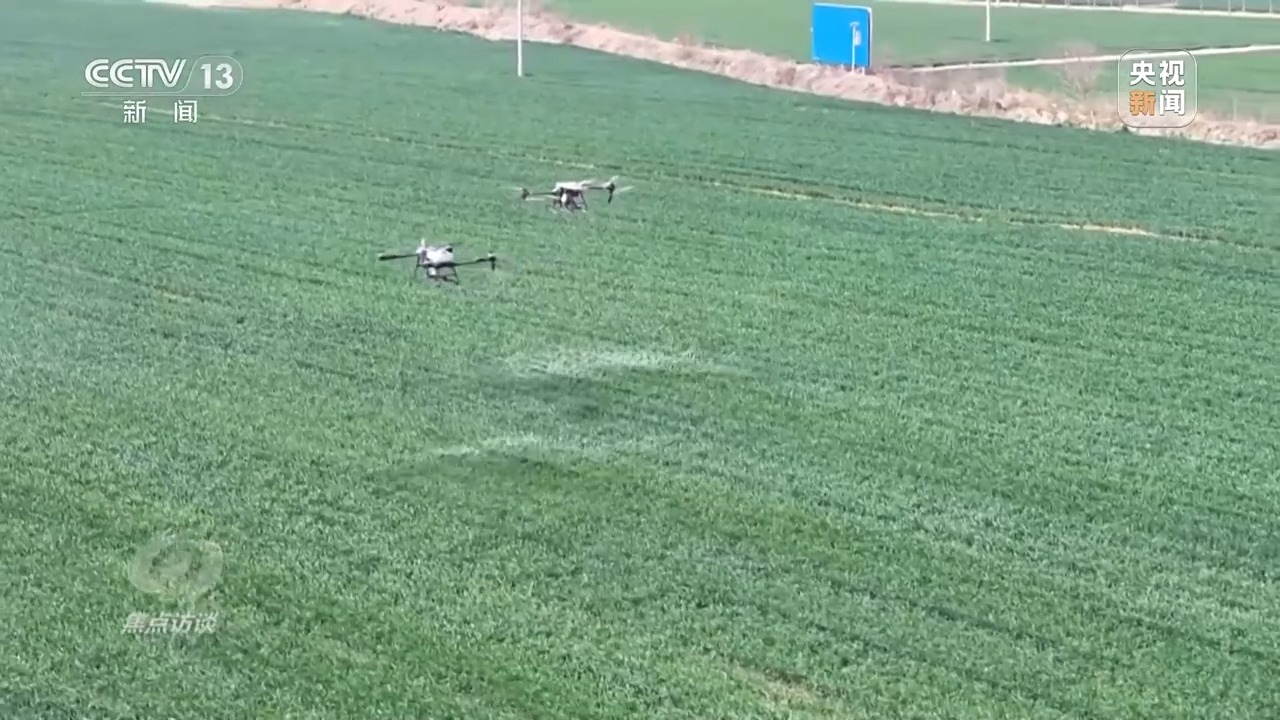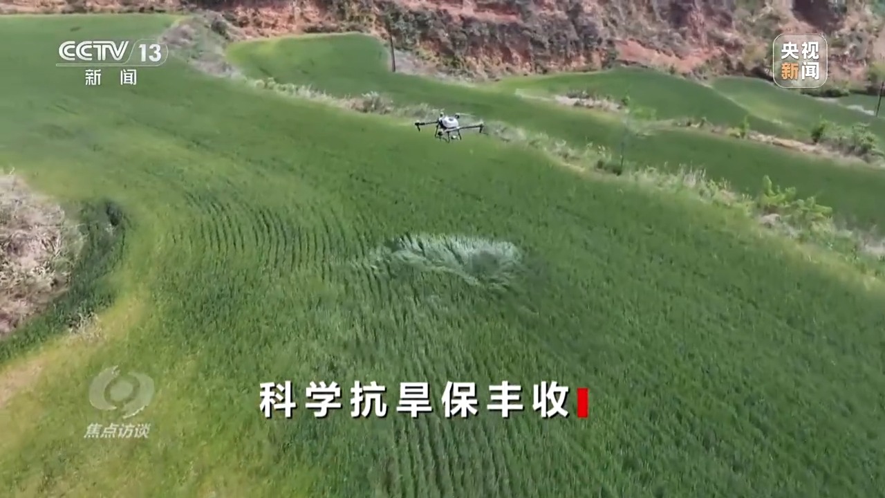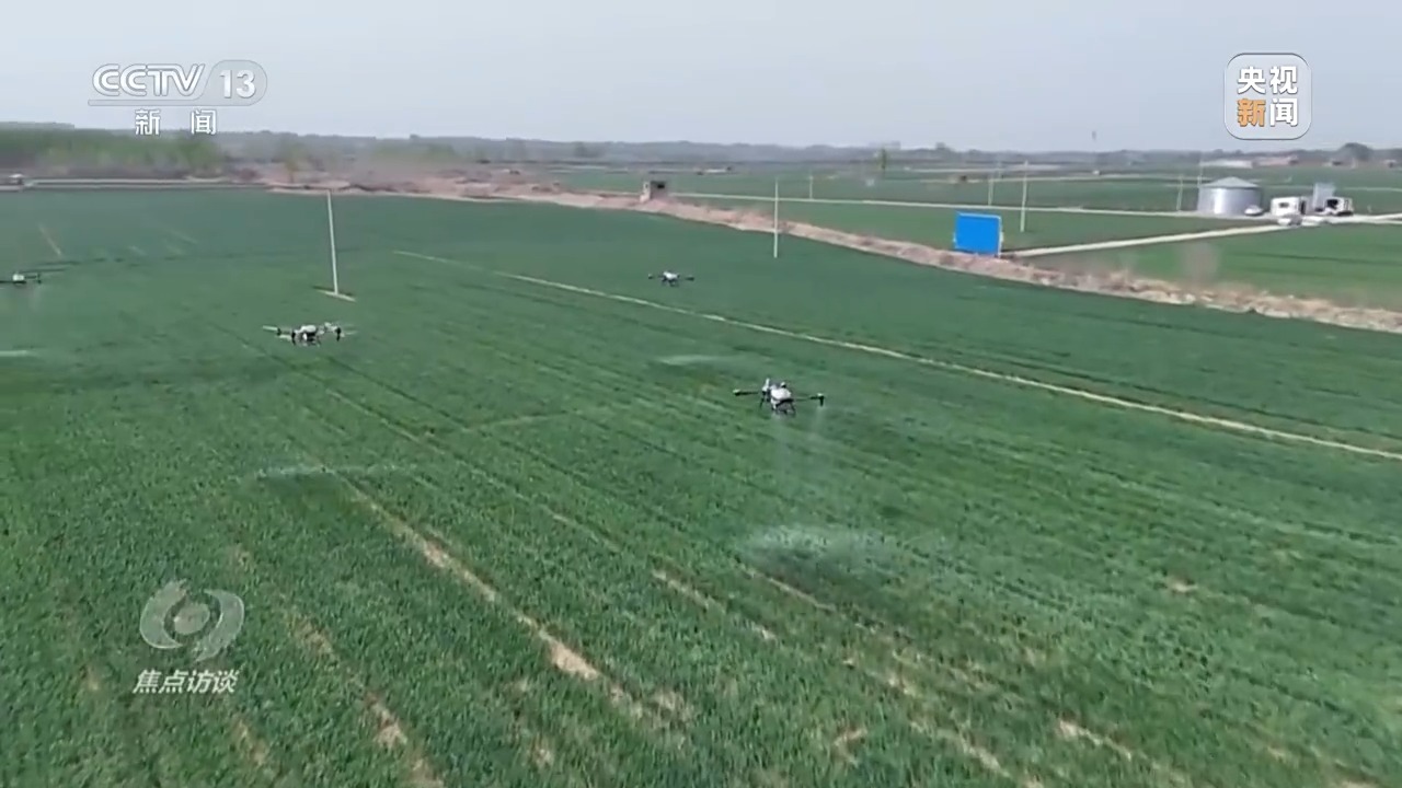 5月17日,40攝氏度高溫天氣到來的前兩天,當(dāng)?shù)囟鄠€小麥主產(chǎn)縣,一臺臺植保無人機低空掠過綠浪翻滾的麥穗,噴灑出細密的“藥雨、肥雨”,為久旱的麥田送來了及時雨。