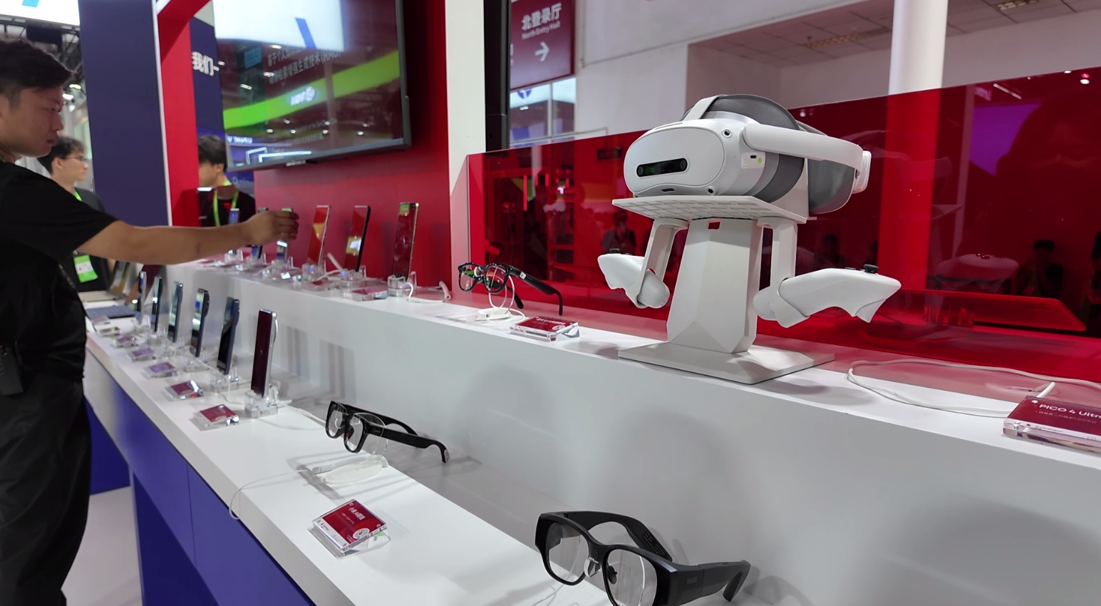 在第三屆鏈博會上,高通公司展示的AI眼鏡等智能終端產品。(央廣財經記者黃昂瑾 攝)