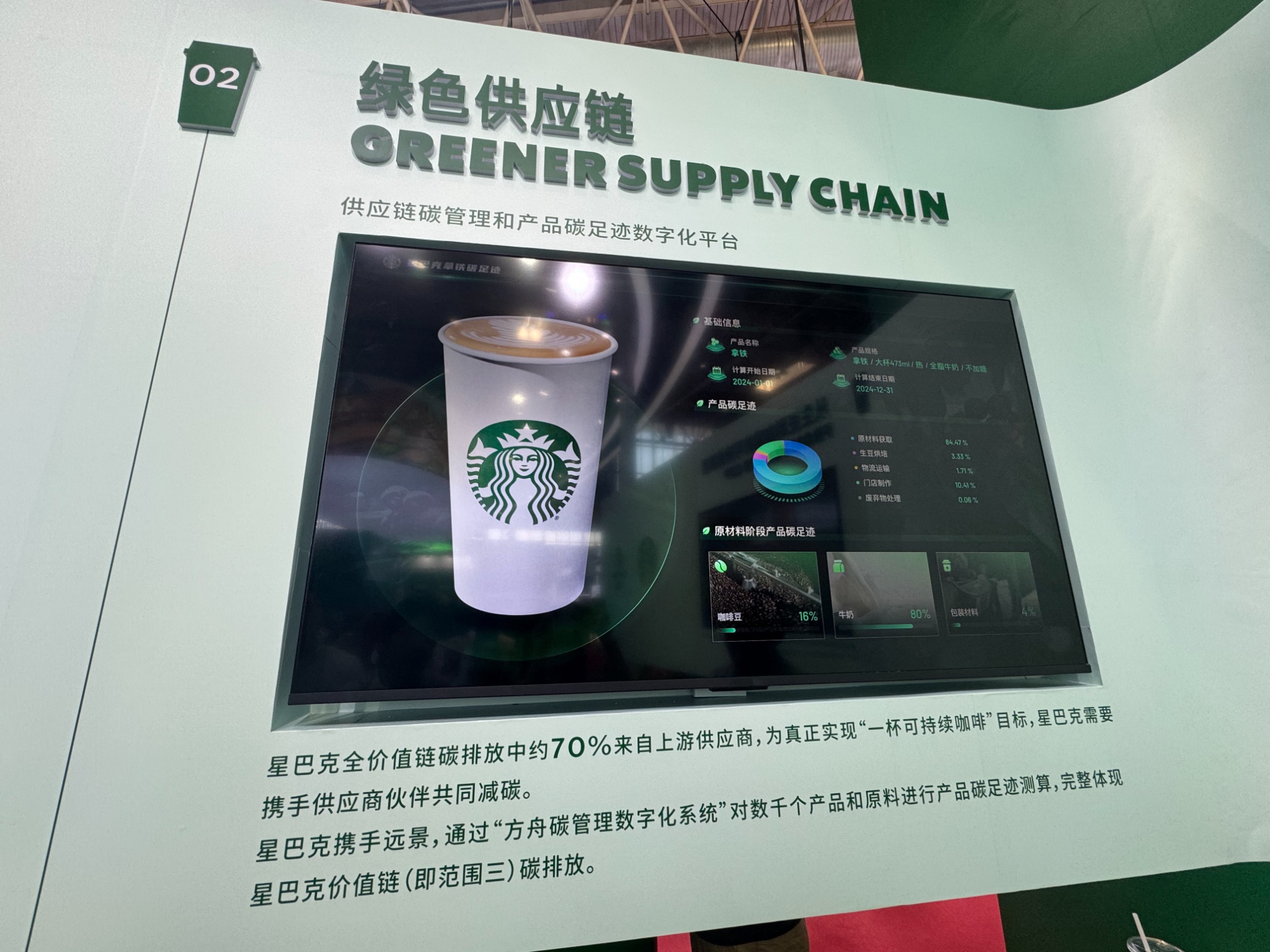 在第三屆鏈博會上,星巴克展示的綠色供應鏈。(央廣財經記者黃昂瑾 攝)