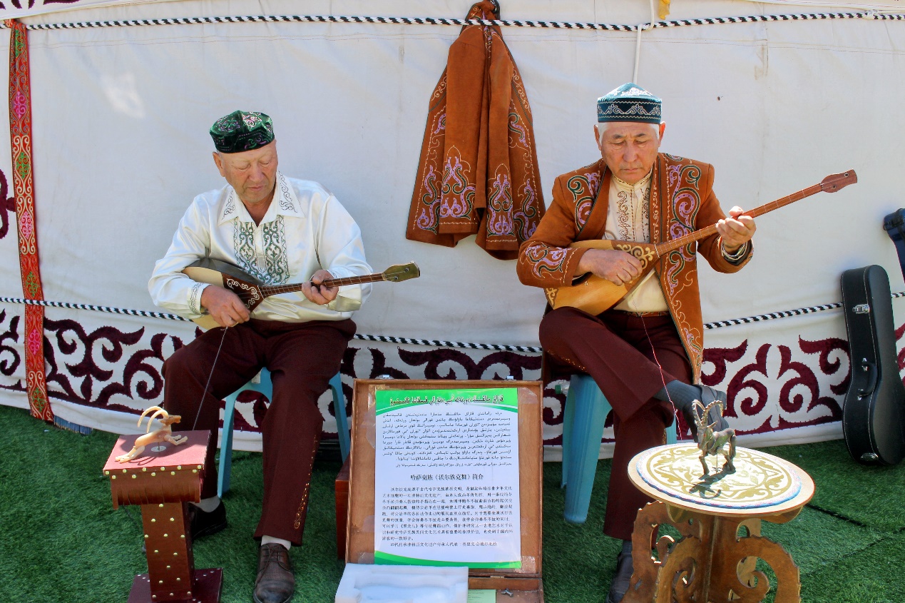 彩虹布拉克的氈房外有非遺沃爾鐵克的技藝表演,采訪團(tuán)被“會(huì)跳舞的小山羊”所吸引。非遺沃爾鐵克代表性傳承人賽里克·合德爾毛拉介紹到,“沃爾鐵克”在哈薩克語(yǔ)中是“領(lǐng)頭羊”的意思,哈薩克族在與自然交往的過程中度過游牧?xí)r代,“沃爾鐵克”不僅是小孩子解悶的兒時(shí)玩具,也是代代相傳的精神文明。伴隨著冬不拉的彈奏,撥弦的手牽動(dòng)連著“小山羊”的線,控制著它的跳躍姿勢(shì),模仿巖羊在懸崖峭壁上行走奔跑。