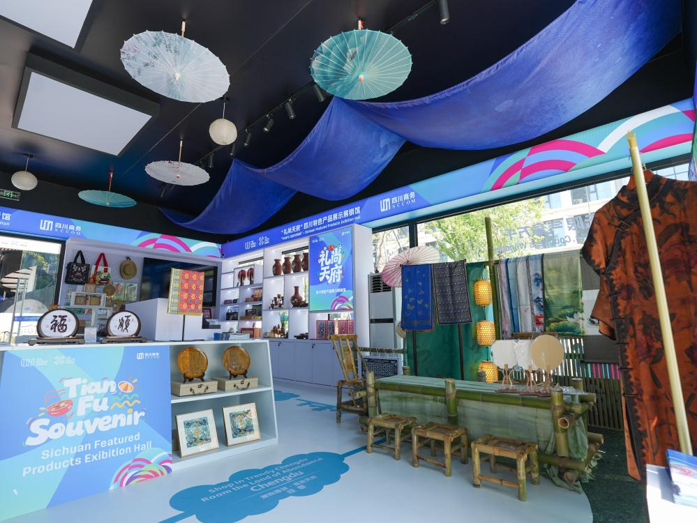 8月3日,在成都世運(yùn)會(huì)運(yùn)動(dòng)員村A區(qū)拍攝的四川特色產(chǎn)品展示展銷(xiāo)館。新華社記者 王曦 攝