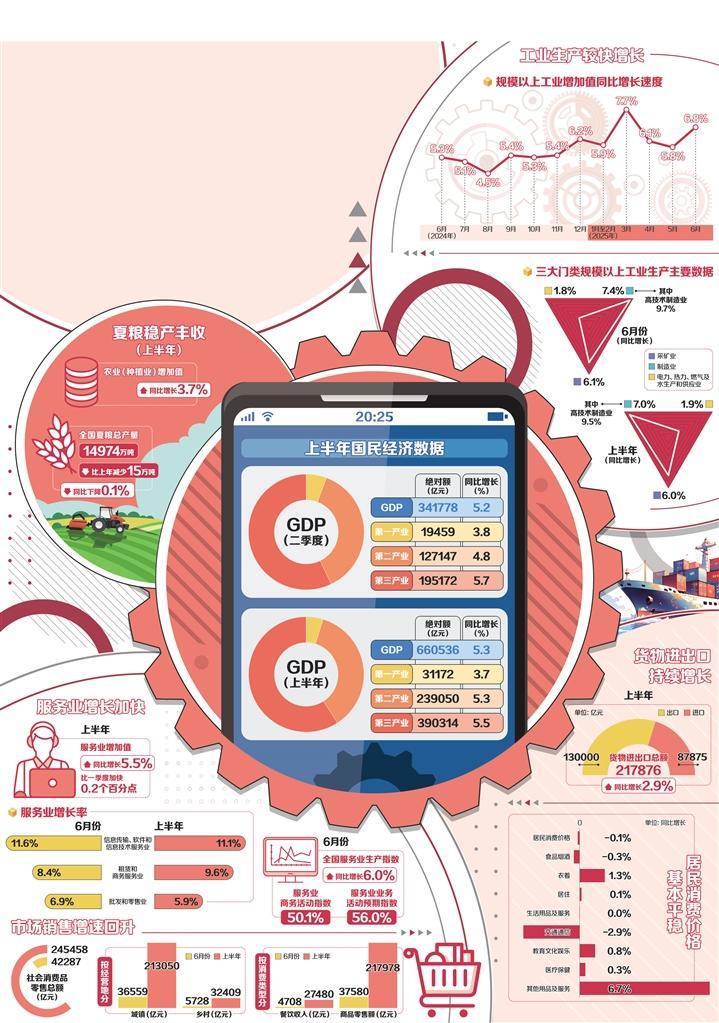 2025年上半年,中國經(jīng)濟(jì)頂壓克難,在復(fù)雜“路況”中穩(wěn)定前行,高質(zhì)量發(fā)展向新向好,展現(xiàn)出強(qiáng)大韌性和活力。