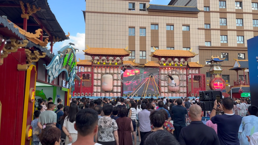 在烏魯木齊市的天山明月城特色街區(qū),這里匯集了餐飲、休閑娛樂、歌舞演藝等業(yè)態(tài),每天都有各類演出活動,在豐富市民游客文化活動的同時,激發(fā)消費活力,助力“夜經(jīng)濟”發(fā)展。