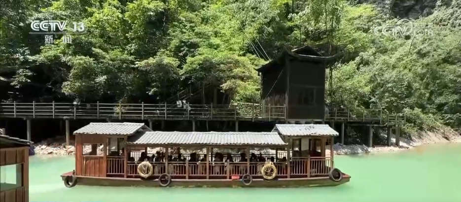 乘船賞景也成為景區(qū)一大特色,游客們乘坐游船緩緩穿梭于澄澈的湖面上,四周峽谷青山環(huán)抱,石壁瀑布傾瀉而下,兩岸景色蔚為壯觀。微風(fēng)拂來,吹散夏日的燥熱,讓人沉浸在如詩如畫的美景中,心曠神怡。