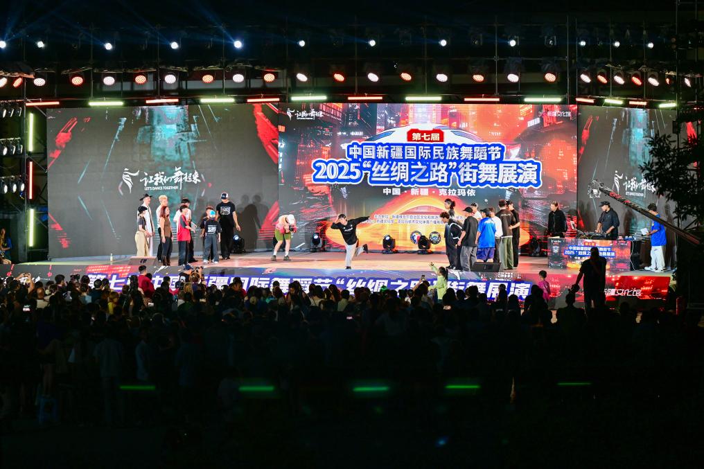 8月3日晚,在第七屆中國新疆國際民族舞蹈節(jié)2025“絲綢之路”街舞展演的舞臺上,國內(nèi)外舞者相聚克拉瑪依市同臺亮相,用街舞語言講述追夢的青春故事。