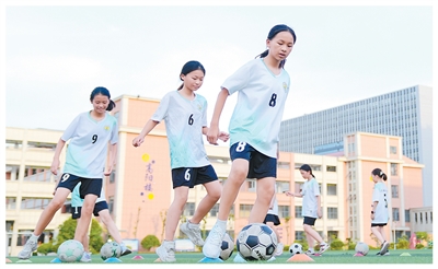 江西宜春上高縣錦陽小學(xué)托管班上,學(xué)生在踢足球。