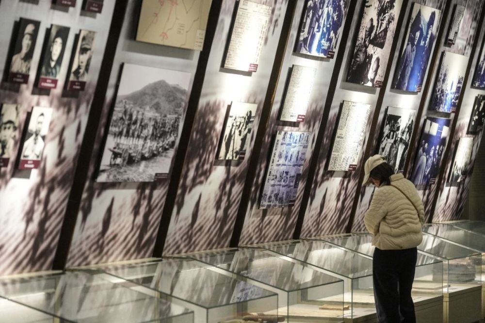 參觀者在遼沈戰(zhàn)役紀念館內(nèi)參觀(4月1日攝)。遼沈戰(zhàn)役紀念館收藏了穆青同志采寫的《東北抗日聯(lián)軍斗爭史略》。新華社記者潘昱龍攝