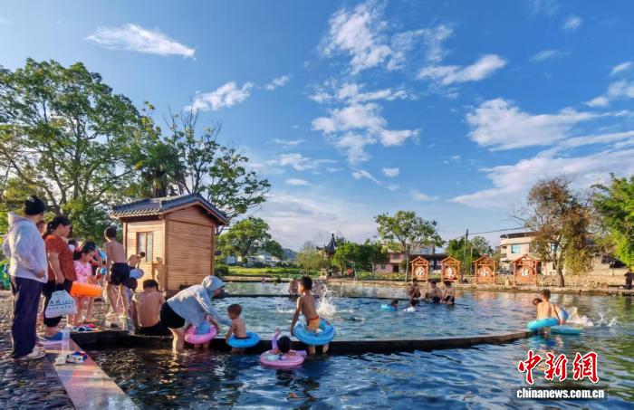 位于福建省清流縣李家鄉(xiāng)鮮水村的“冷泉小鎮(zhèn)”景區(qū)游人如織。不少村民推著手推車在景區(qū)穿梭售賣特色零食,與水池中人們的嬉戲畫面相映成趣,構(gòu)成一幅動靜相宜、生活氣息濃郁的民俗畫卷。