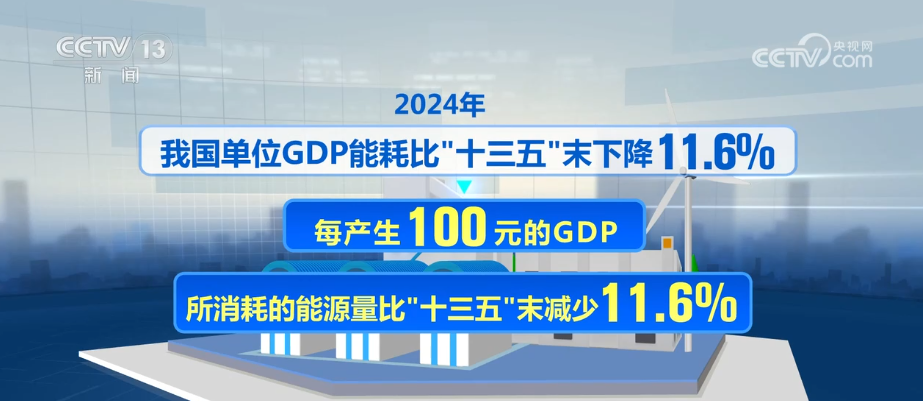 2024年,我國(guó)單位GDP能耗比“十三五”末下降11.6%。也就是說每產(chǎn)生100元的GDP,所消耗的能源量比“十三五”末減少了11.6%,能耗下降的同時(shí),另一個(gè)指標(biāo)的水平卻提高了——主要資源產(chǎn)出率卻提高了12%。