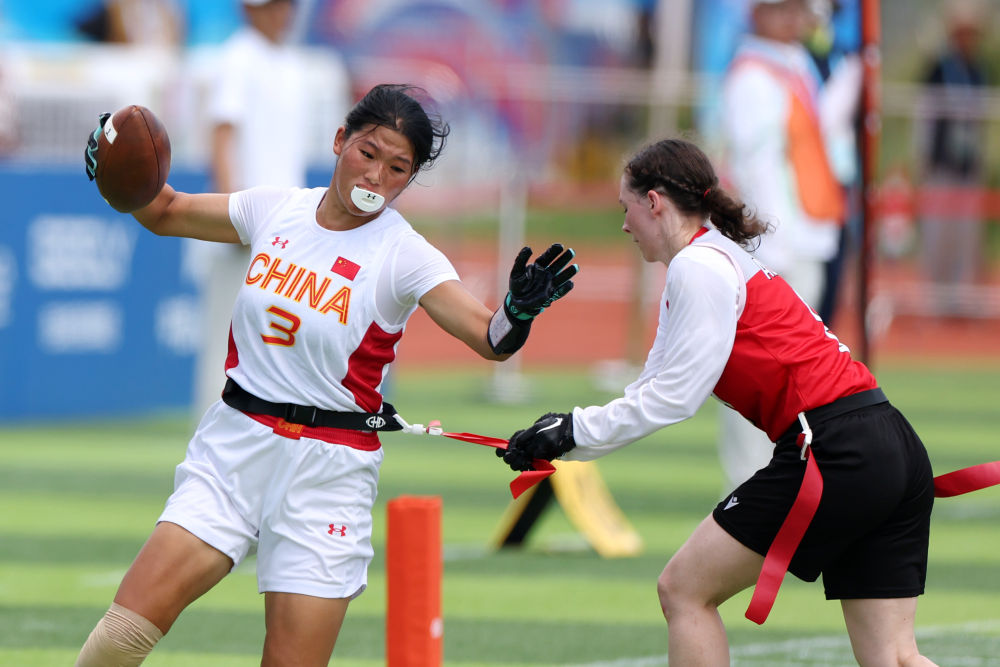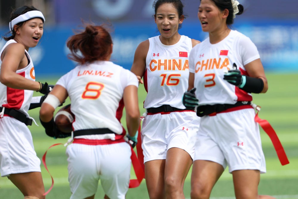 成都世運(yùn)會女子腰旗橄欖球比賽首日,中國隊上演正式比賽首秀。這支組隊集訓(xùn)僅3個多月的“神秘之師”,在首場迎戰(zhàn)世界排名第四的奧地利隊的比賽中,只以2分惜敗。