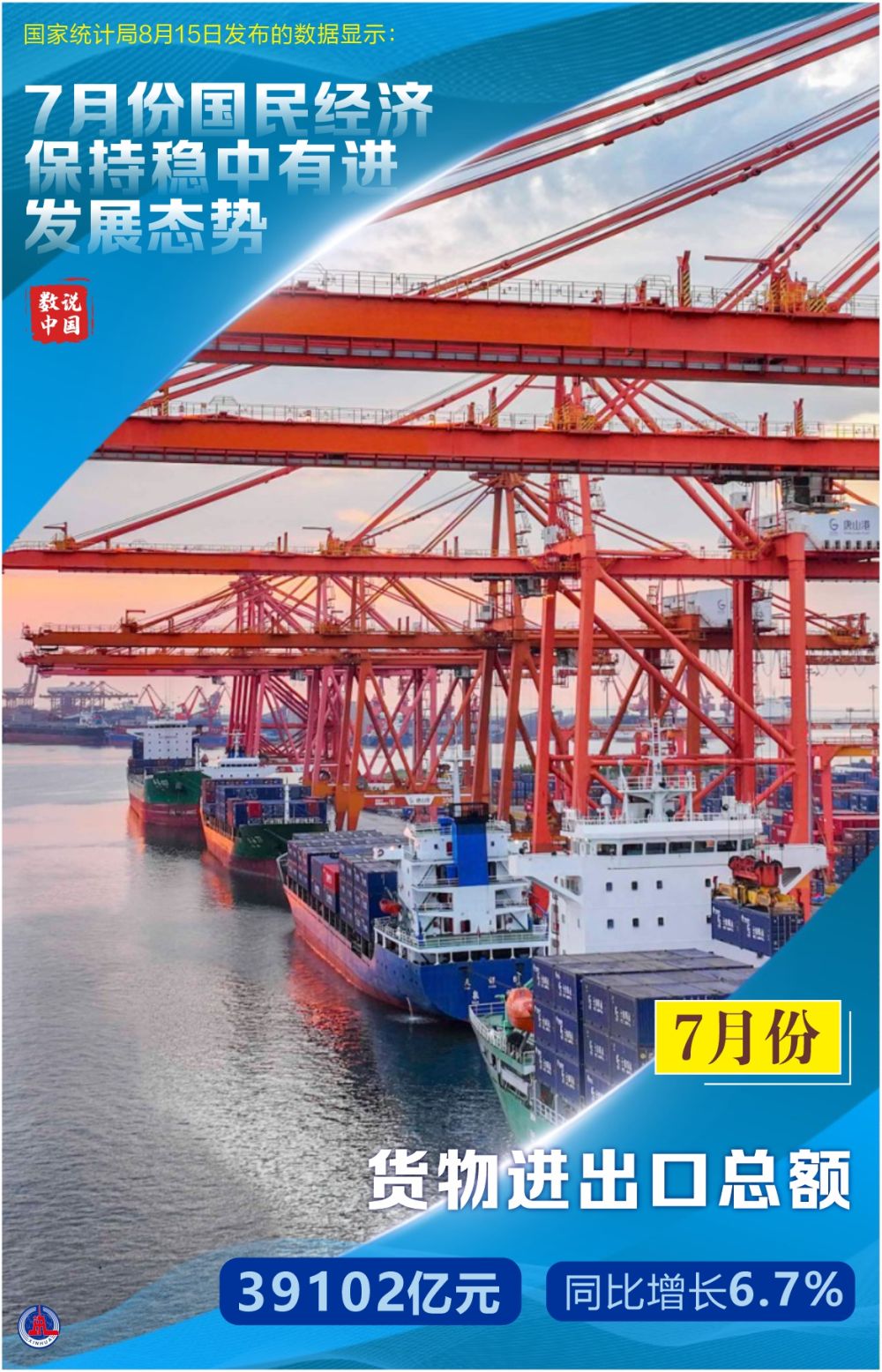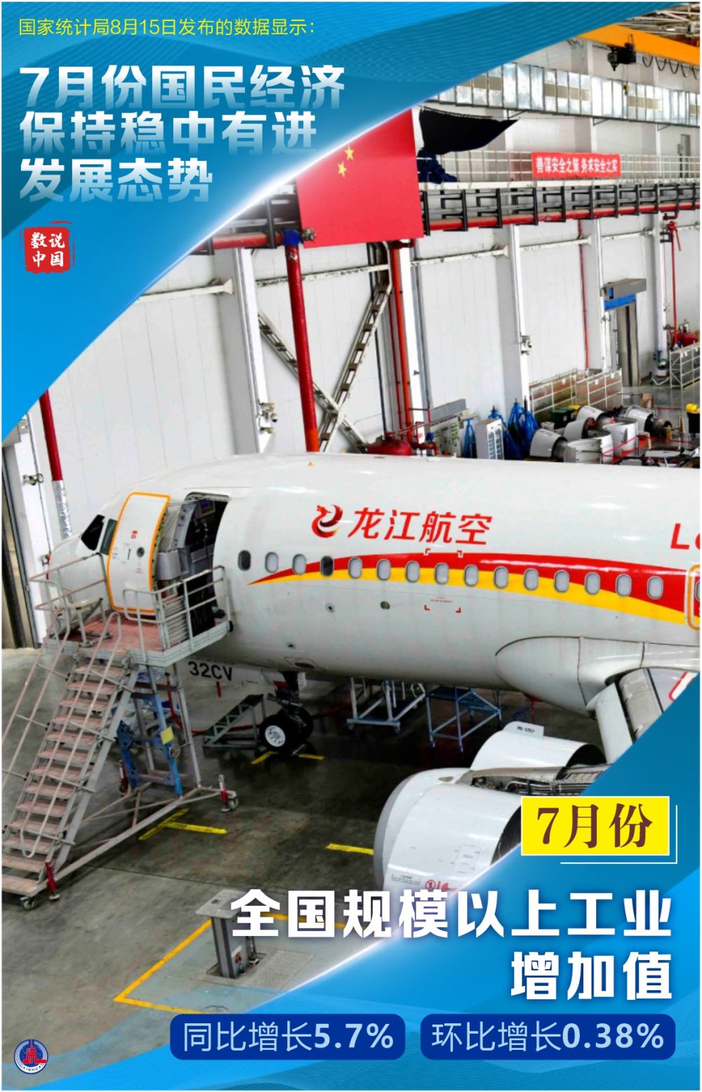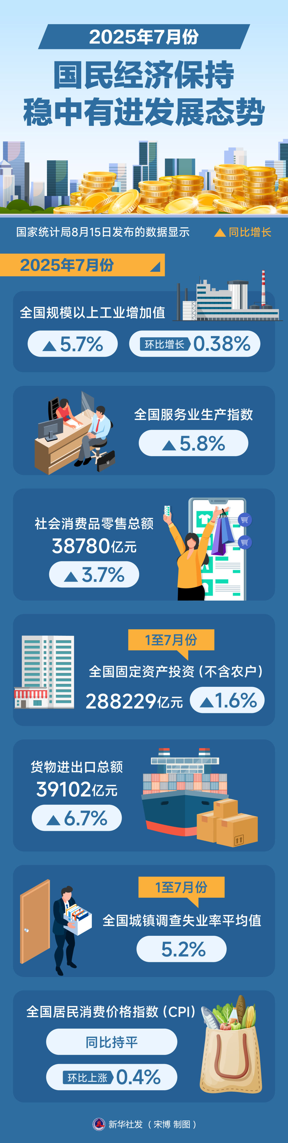 國家統(tǒng)計局8月15日發(fā)布的數(shù)據(jù)顯示,2025年7月份,國民經(jīng)濟(jì)保持穩(wěn)中有進(jìn)發(fā)展態(tài)勢,生產(chǎn)需求持續(xù)增長,就業(yè)物價總體穩(wěn)定,新質(zhì)生產(chǎn)力培育壯大,高質(zhì)量發(fā)展取得新成效。