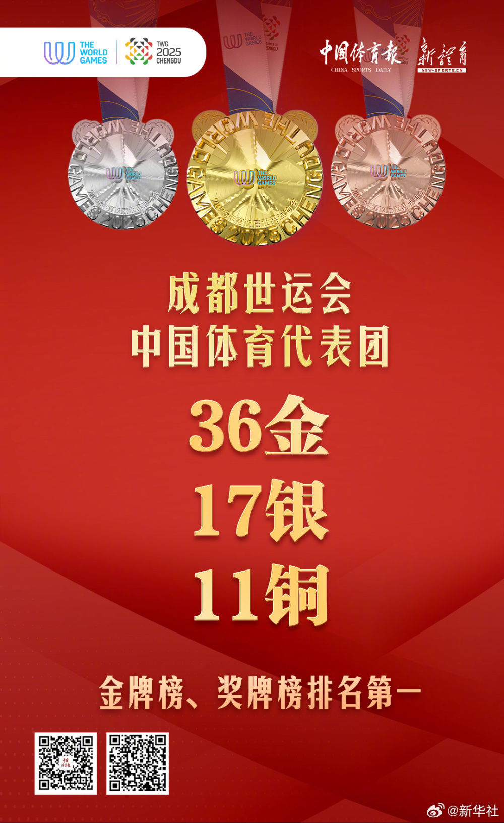中國體育代表團(tuán)位居金牌、獎牌榜首位!為運動員們點贊!