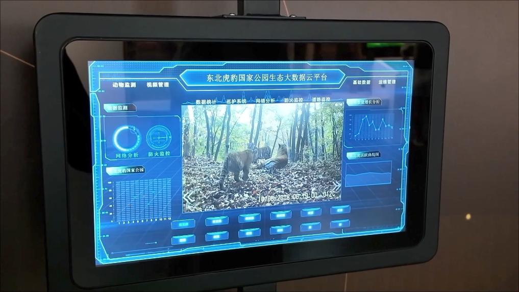 在吉林省琿春東北虎豹自然科普館,東北虎豹國家公園的“天空地一體化監(jiān)測體系”通過智能紅外相機(jī)、衛(wèi)星遙感、無人機(jī)等技術(shù),回傳野生動(dòng)物活動(dòng)影像。