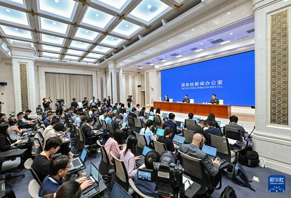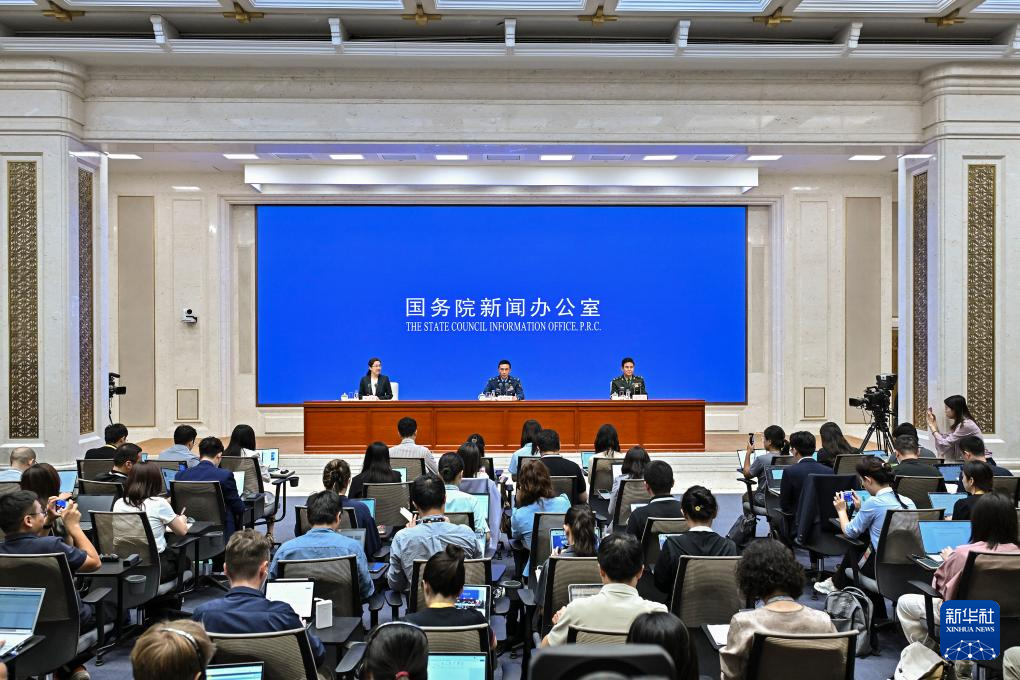 8月20日,國務院新聞辦公室在北京舉行新聞發(fā)布會,閱兵領導小組辦公室副主任、中央軍委聯(lián)合參謀部作戰(zhàn)局少將副局長吳澤棵,中國人民解放軍中部戰(zhàn)區(qū)閱兵指揮機構辦公室常務副主任、政治工作部少將副主任徐貴忠介紹閱兵準備工作有關情況,并答記者問。新華社記者 李鑫 攝