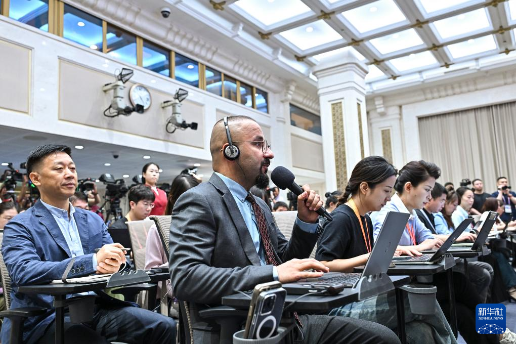8月20日,國務院新聞辦公室在北京舉行新聞發(fā)布會,閱兵領導小組辦公室副主任、中央軍委聯(lián)合參謀部作戰(zhàn)局少將副局長吳澤棵,中國人民解放軍中部戰(zhàn)區(qū)閱兵指揮機構辦公室常務副主任、政治工作部少將副主任徐貴忠介紹閱兵準備工作有關情況,并答記者問。這是記者在現(xiàn)場提問。新華社記者 李鑫 攝