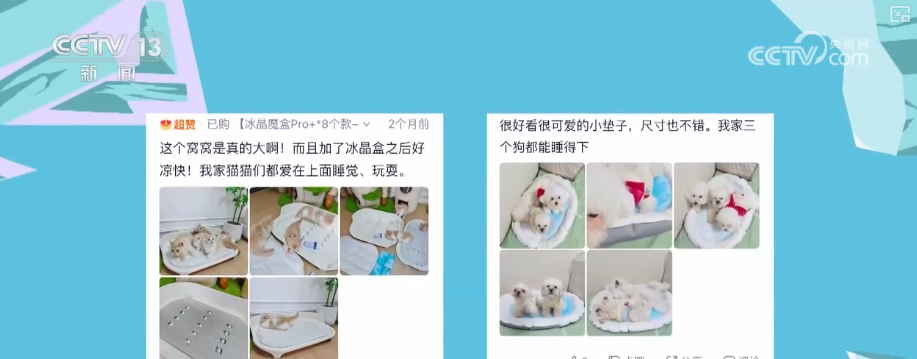 高溫還催熱了“它經(jīng)濟(jì)”。在網(wǎng)購(gòu)平臺(tái)上搜索關(guān)鍵詞“寵物降溫”,寵物空調(diào)房、冰墊、冰絲圍巾、寵物專用空調(diào)等商品琳瑯滿目。一件30塊錢左右的基礎(chǔ)款寵物冰墊,月銷量輕松破萬(wàn)。可調(diào)節(jié)風(fēng)速的寵物風(fēng)扇、能自動(dòng)制冷的寵物窩等,同樣備受追捧。評(píng)論區(qū)的畫風(fēng)是這樣的“狗狗非常喜歡,玩得不亦樂(lè)乎”“貓咪睡覺(jué)終于踏實(shí)了”“家里的娃和毛孩子都很喜歡”。