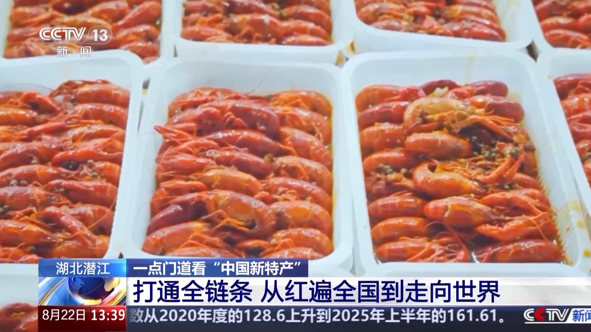 潛江市小龍蝦產(chǎn)業(yè)發(fā)展促進(jìn)中心主任 章云:截至目前,潛江小龍蝦的規(guī)模以上加工企業(yè)共有19家,生產(chǎn)出了60多種產(chǎn)品,組成了小龍蝦產(chǎn)品矩陣,建立了涵蓋餐飲、食品、醫(yī)療等多領(lǐng)域的全產(chǎn)業(yè)鏈體系??梢哉f,從田間到餐桌,從國內(nèi)到國際,潛江將這小小的一只蝦“吃干榨凈”,綜合(年)產(chǎn)值已經(jīng)突破了870億。
