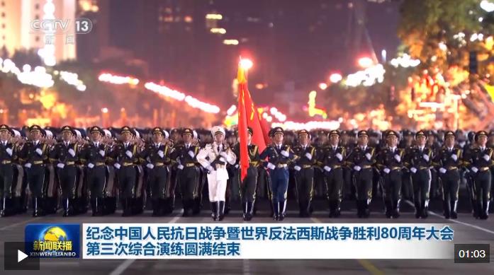 記者從中國人民抗日戰(zhàn)爭暨世界反法西斯戰(zhàn)爭勝利80周年紀念活動新聞中心獲悉,8月23日17時至8月24日5時,北京天安門地區(qū)舉行了紀念中國人民抗日戰(zhàn)爭暨世界反法西斯戰(zhàn)爭勝利80周年大會第三次綜合演練。據(jù)介紹,這是一次全流程、全要素預(yù)演,也是紀念大會最后一次綜合演練,包括紀念大會儀式(含閱兵)、轉(zhuǎn)場、觀眾組織及應(yīng)急處置等各項內(nèi)容,重點檢驗了各流程、各環(huán)節(jié)的銜接配合,為正式活動的成功舉辦打下堅實基礎(chǔ)。
