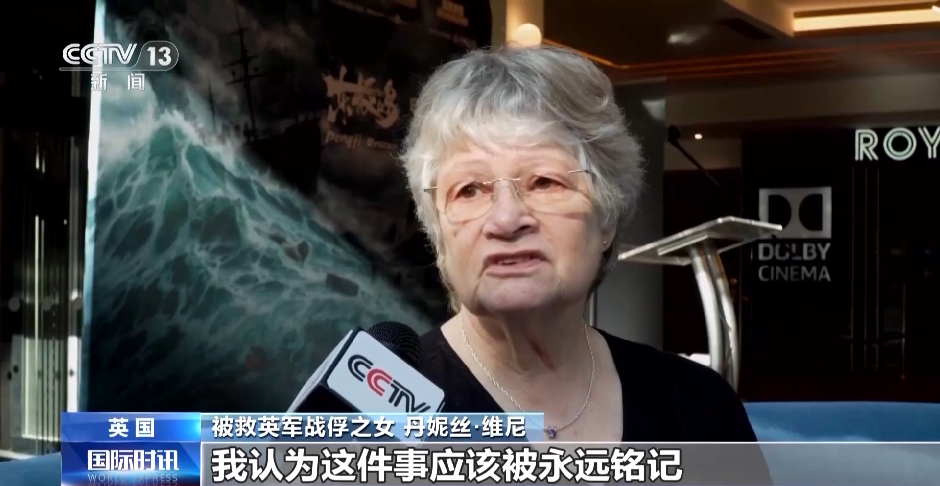 被救英軍戰(zhàn)俘之女 丹妮絲·維尼:那些中國漁民是真正的英雄。他們冒著可能被日本人殺死的風險,毫不畏懼地沖了過去。中國漁民的行為展現(xiàn)出了人性的美好,他們不忍心看到這些人死在水中,于是他們無論如何都要去救他們。我認為這件事應該被永遠銘記,應該被載入史冊,孩子們應該在學校里學到這段歷史。