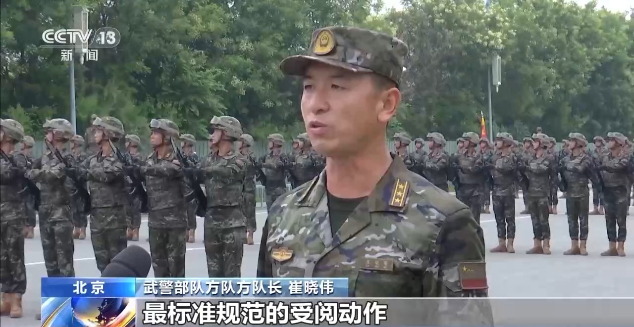 武警部隊(duì)方隊(duì)方隊(duì)長 崔曉偉:目前我們已經(jīng)進(jìn)入最后的沖刺階段,在紀(jì)念抗戰(zhàn)勝利80周年紀(jì)念日當(dāng)天,以最昂揚(yáng)的精神狀態(tài)、最標(biāo)準(zhǔn)規(guī)范的受閱動作,光榮地接受黨和人民檢閱,接受習(xí)主席檢閱。