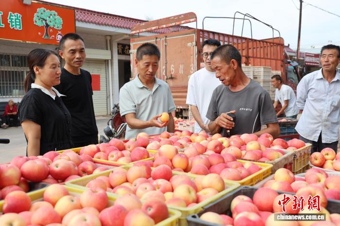江西客商在陜西洛川的交易市場(chǎng)上挑選早熟蘋果?!±钸M(jìn) 攝