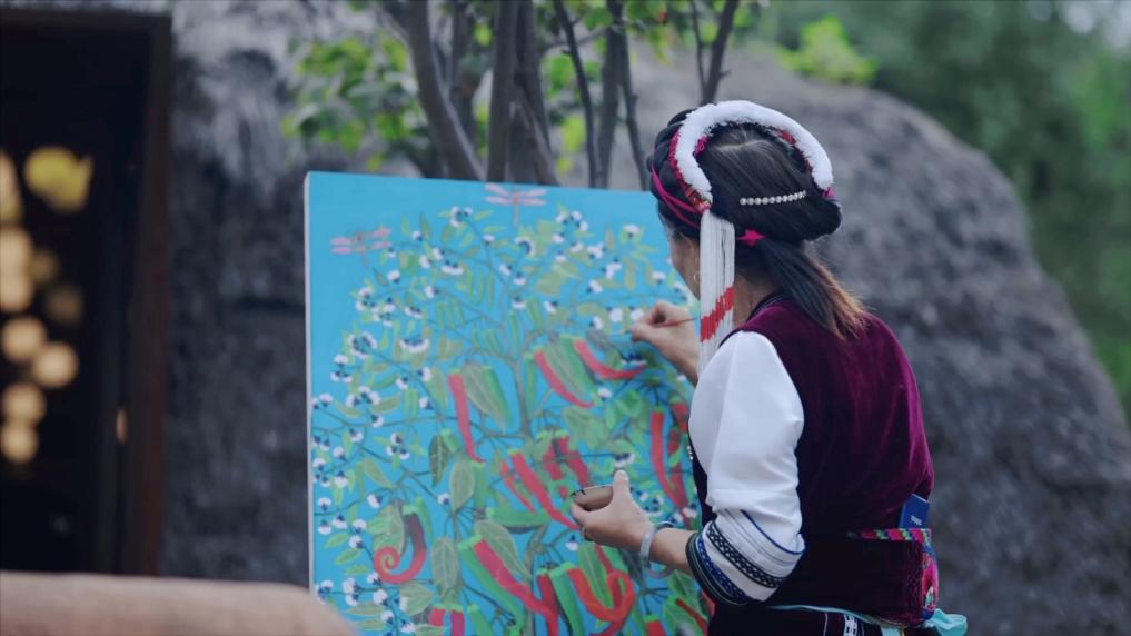 云南大理雙廊鎮(zhèn)伙山村有個(gè)農(nóng)民畫(huà)社,92歲的王秉秀老人從78歲起拿起畫(huà)筆,把繡花的技法用到繪畫(huà)上,將田間的耕耘、山間的景致、世代相傳的民俗風(fēng)情融入畫(huà)作。