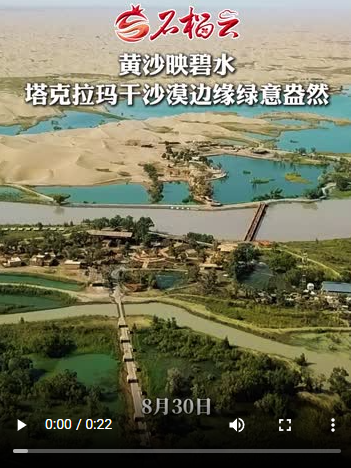 8月30日,位于塔克拉瑪干沙漠邊緣的新疆尉犁縣羅布人村寨,風(fēng)景秀美,綠意盎然。受近期汛期洪水的滋潤,塔里木河兩岸植被生長旺盛,沿岸一派生機(jī)勃勃的景象。