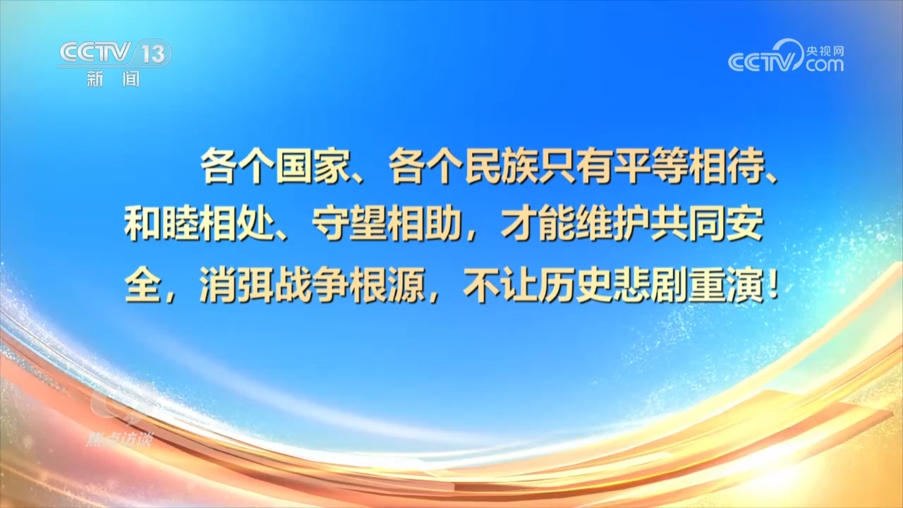 楊鳳城:“總書記在這次紀(jì)念抗戰(zhàn)勝利80周年的講話,還有過去的講話,都特別強(qiáng)調(diào)我們銘記歷史,緬懷先烈,不是為了延續(xù)仇恨,是為了珍愛和平,聚焦發(fā)展。中國(guó)共產(chǎn)黨不僅是這么說的,也是這么做的。我們提出了全人類共同價(jià)值,提出了構(gòu)建人類命運(yùn)共同體,實(shí)踐‘一帶一路’,說明什么?說明中國(guó)共產(chǎn)黨從中國(guó)人民,從自身的經(jīng)歷中,深深體會(huì)到和平的可貴,深深認(rèn)識(shí)到發(fā)展的重要?!?/p>