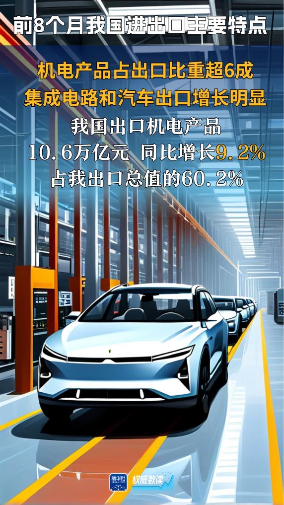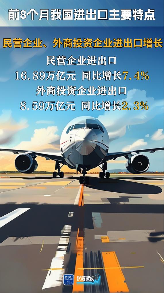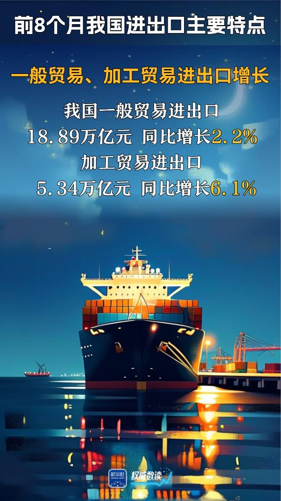海關總署8日發(fā)布數據顯示,今年前8個月,我國貨物貿易延續(xù)平穩(wěn)增長態(tài)勢,進出口總值29.57萬億元人民幣,同比增長3.5%。8月份,我國貨物貿易進出口總值同比增長3.5%,出口、進口連續(xù)3個月實現(xiàn)雙增長。