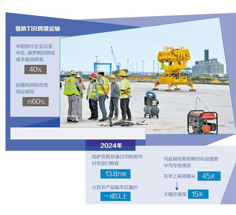 在區(qū)域產(chǎn)業(yè)鏈協(xié)同方面,TIR運(yùn)輸也為企業(yè)與成員國帶來了實(shí)實(shí)在在的收益:中國部分企業(yè)借助TIR跨境運(yùn)輸,將運(yùn)至中亞、俄羅斯的物流成本最高降低40%,運(yùn)輸時(shí)間較傳統(tǒng)海運(yùn)縮短約60%;2024年,哈薩克斯坦通過中歐班列對華出口糧食13.8萬噸,占其農(nóng)產(chǎn)品輸華總量的一成以上;烏茲別克斯坦的棉紡織品借助中烏專線物流,在華上架周期從45天大幅壓縮至15天。在產(chǎn)業(yè)鏈協(xié)同層面,汽車零部件、電子元件等中間品成了跨境電商新增長點(diǎn),標(biāo)志著區(qū)域合作正從商品貿(mào)易向產(chǎn)業(yè)鏈深度融合升級,通過降成本、提效率、拓品類,實(shí)現(xiàn)了上下游產(chǎn)業(yè)鏈的互利共贏。