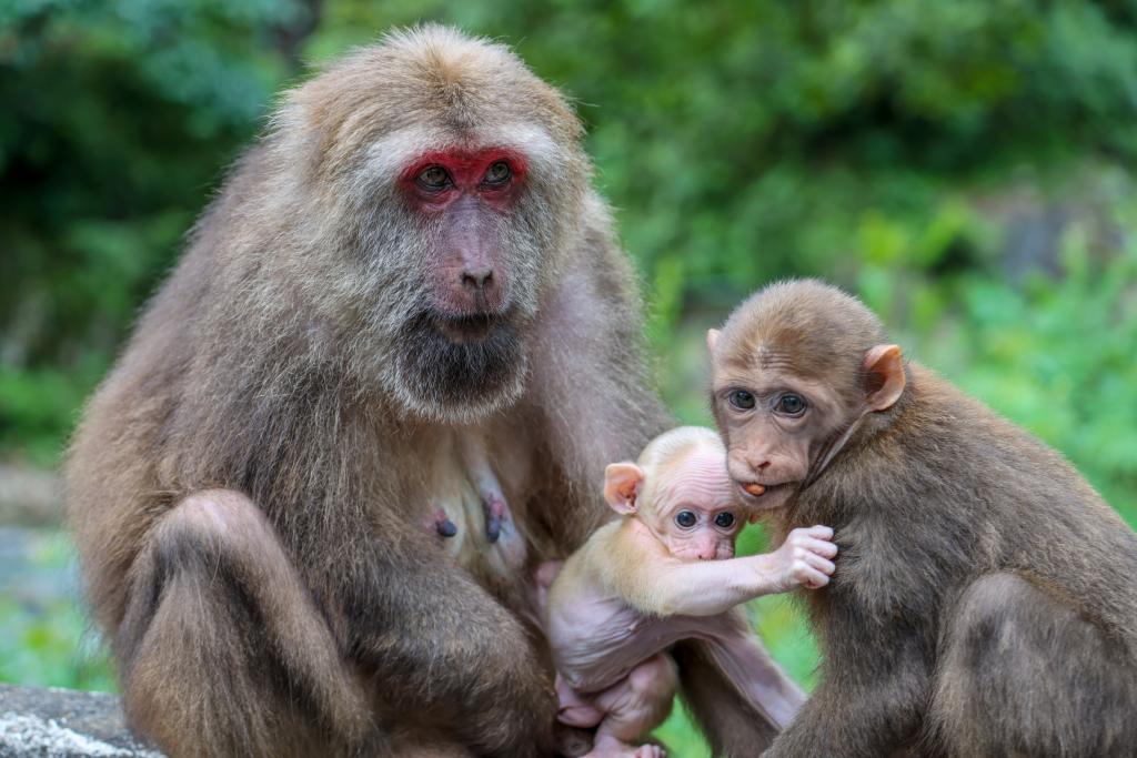 7月22日,藏酋猴在武夷山國家公園腹地桐木村嬉戲。新華社發(fā)(邱汝泉攝)