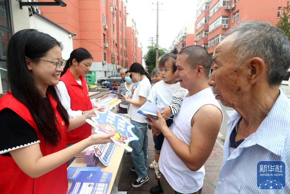 9月15日,江蘇省連云港市連云區(qū)委網(wǎng)信辦工作人員給連云區(qū)西園社區(qū)居民宣傳網(wǎng)絡(luò)安全知識。新華社發(fā)(王春攝)