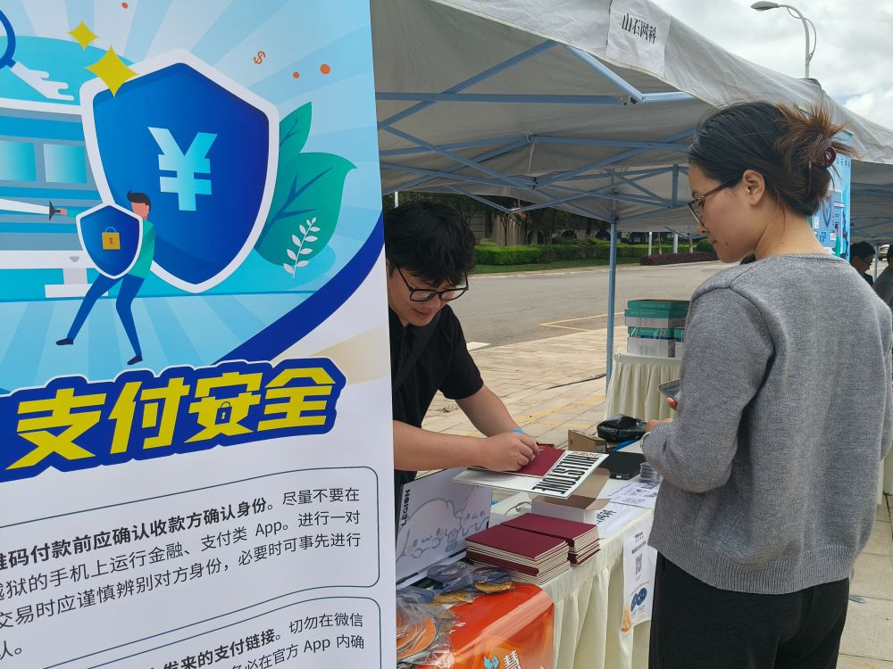 校園的露天廣場(chǎng)上還安排有網(wǎng)絡(luò)安全知識(shí)趣味問答活動(dòng),吸引學(xué)生參與,讓他們?cè)谳p松愉快的氛圍中鞏固了反詐知識(shí)。還有工作人員向路過的學(xué)生發(fā)放反詐宣傳手冊(cè)。