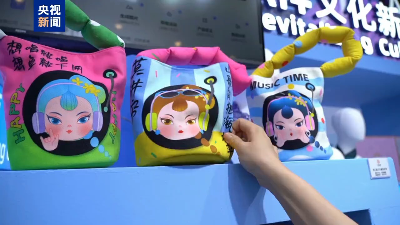 總臺央視記者 張歆:在人工智能專館,除了有炫酷的機(jī)器人,我們可以看到,這個(gè)水桶包就是由人工智能提供靈感的,以劉三姐為IP形象的文創(chuàng)產(chǎn)品。那么這個(gè)水桶包還引用了劉三姐山歌的內(nèi)容,“山歌能把海填平”。