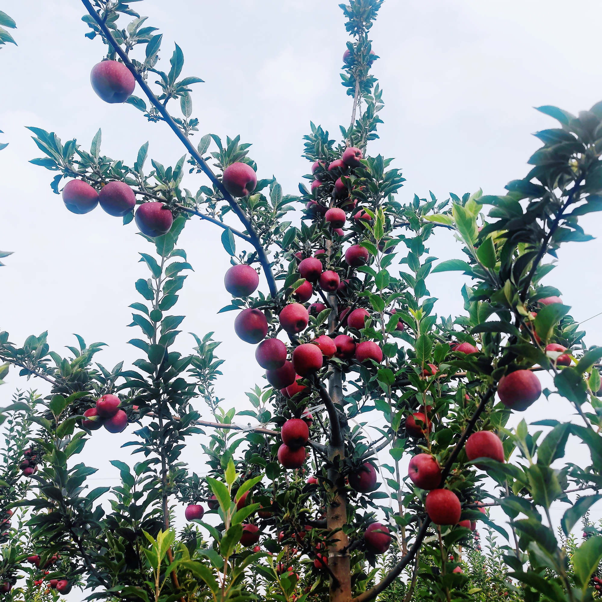 金秋時節(jié)的平原村蘋果產(chǎn)業(yè)園,550畝果樹長勢喜人。放眼望去,漫山遍野的蘋果樹上掛滿了紅彤彤的果實,像一個個紅燈籠,把枝頭壓得沉甸甸的。2017年至2018年栽種的323畝瓦里短枝蘋果與200多畝富士蘋果,今年全面進入盛果期。得益于今年自然災害少、管理精細化,加之平原村光照充足、土壤肥沃的自然優(yōu)勢,這里的蘋果外形圓潤均勻、果面光潔細膩,咬下一口滿是香脆甜爽,早已成為消費者青睞的“心頭好”。