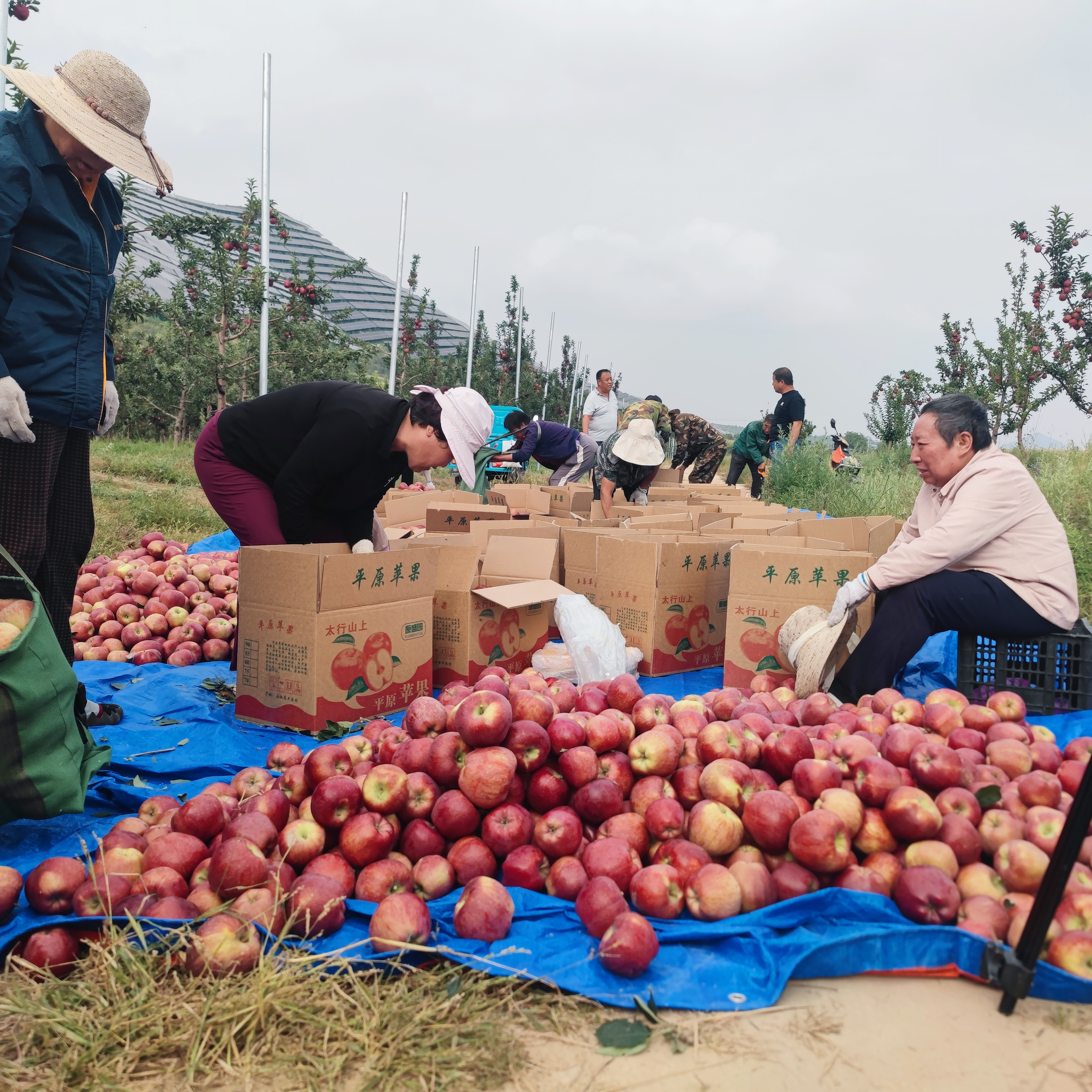 “家人們、老鐵們,蘋果現(xiàn)在到了成熟的季節(jié),這是咱們平原村的蘋果,日照時間特別的充足,口感特別的清甜,品質(zhì)這么好的蘋果,大家需要的話可以來采摘……”在山西晉中市昔陽縣趙壁鄉(xiāng)平原村蘋果種植基地,主播正舉著鮮紅的紅星蘋果,對著鏡頭熱情推介。直播間里訂單不斷,果園里更是一派熱鬧景象——村民們穿梭在果樹間采摘,分揀攤上的蘋果堆成小山,金秋的豐收氣息撲面而來。