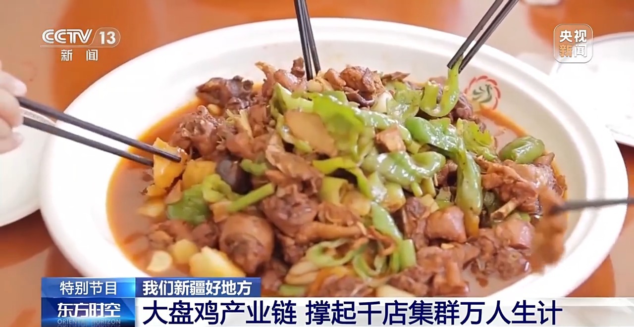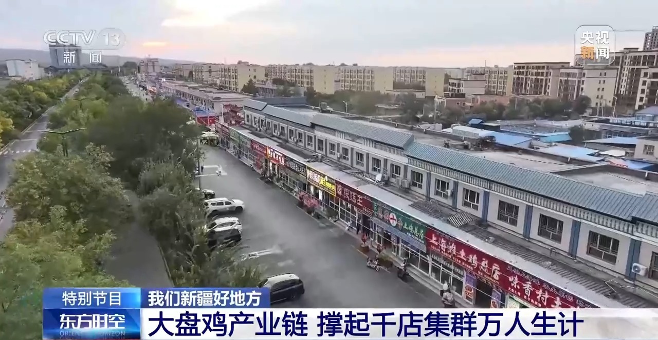 總臺央視記者 張叢婧:在新疆沙灣市的“大盤雞一條街”,這里幾乎家家戶戶都在做大盤雞,此時整條街都彌漫著香味。很多人知道新疆大盤雞,但可能并不知道,它的發(fā)源地就在這里。
