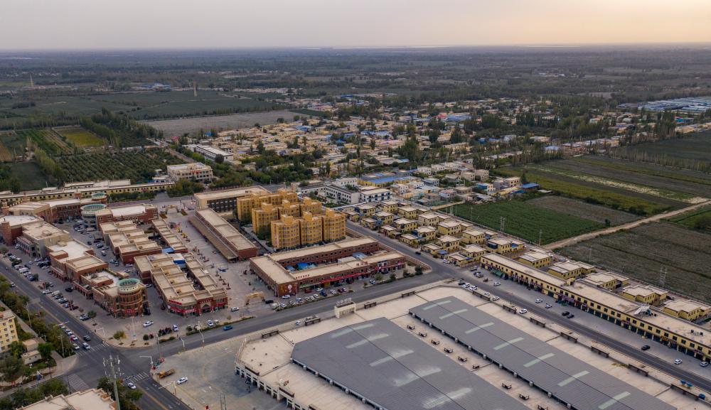 這是9月18日拍攝的新疆巴音郭楞蒙古自治州尉犁縣達(dá)西村(無人機照片)。