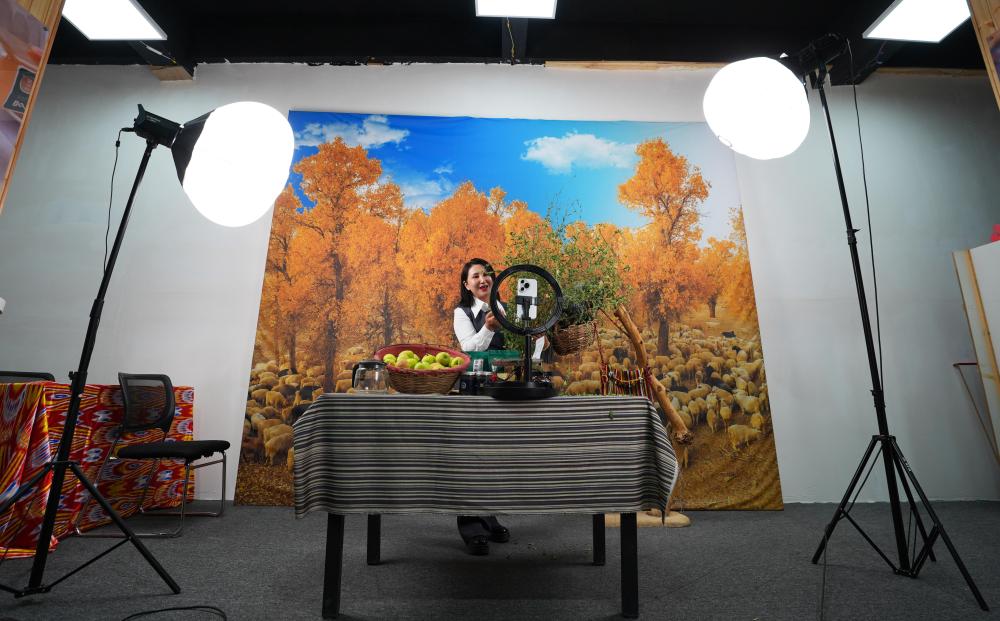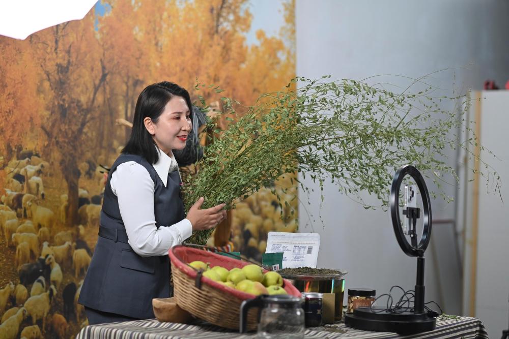 9月19日,尉犁縣電商協(xié)會負(fù)責(zé)人米日阿依·阿西木在達(dá)西村的電商基地直播推介達(dá)西村農(nóng)產(chǎn)品。近年來,達(dá)西村構(gòu)建“農(nóng)戶生產(chǎn)+企業(yè)加工包裝+電商銷售+物流配送”全產(chǎn)業(yè)鏈,為縣域經(jīng)濟發(fā)展培養(yǎng)孵化本土直播電商人才,促進傳統(tǒng)產(chǎn)業(yè)轉(zhuǎn)型升級。