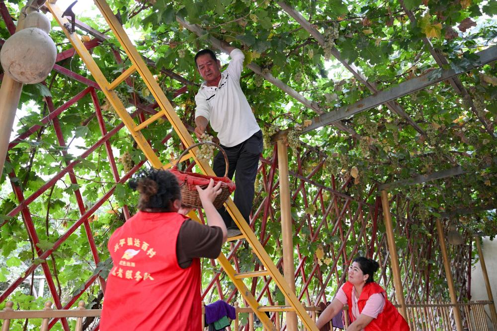 9月18日,達(dá)西村村干部入戶幫助村民采摘葡萄。近年來,達(dá)西村充分挖掘房前屋后閑置土地及荒廢地塊,逐步擴大特色林果種植面積,引導(dǎo)村民增收。