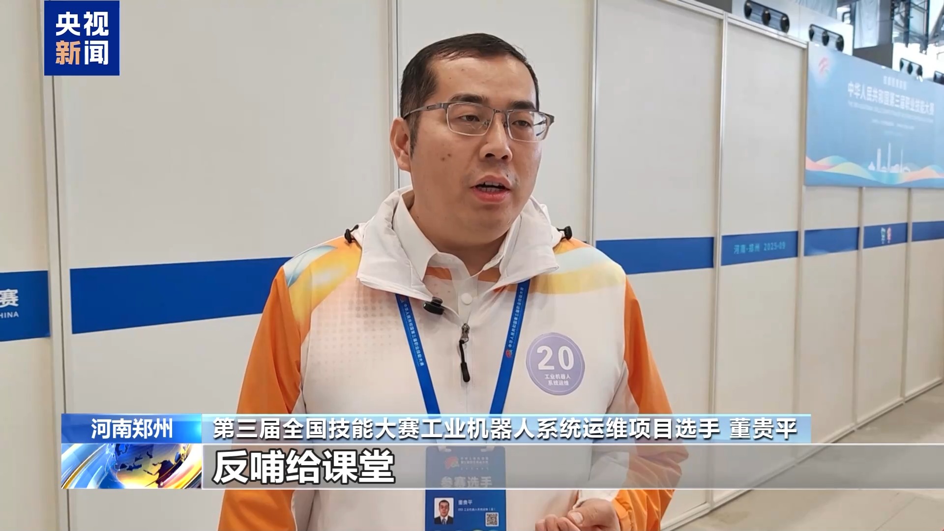 第三屆全國技能大賽工業(yè)機(jī)器人系統(tǒng)運(yùn)維項(xiàng)目選手 董貴平:能夠把學(xué)到的一些實(shí)操技能以及理論知識(shí),反哺給課堂,提升學(xué)生的理論儲(chǔ)備以及實(shí)操的技能。