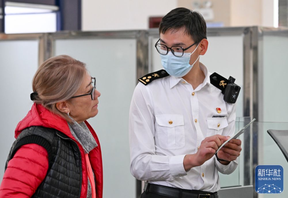 ↑9月17日,巴克圖出入境邊防檢查站的移民管理警察在為來自哈薩克斯坦的旅客辦理入境手續(xù)。
