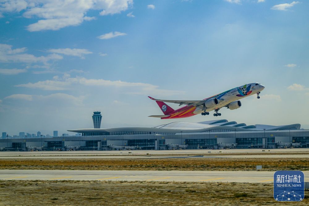 ↑9月15日,一架飛機從烏魯木齊天山國際機場起飛。