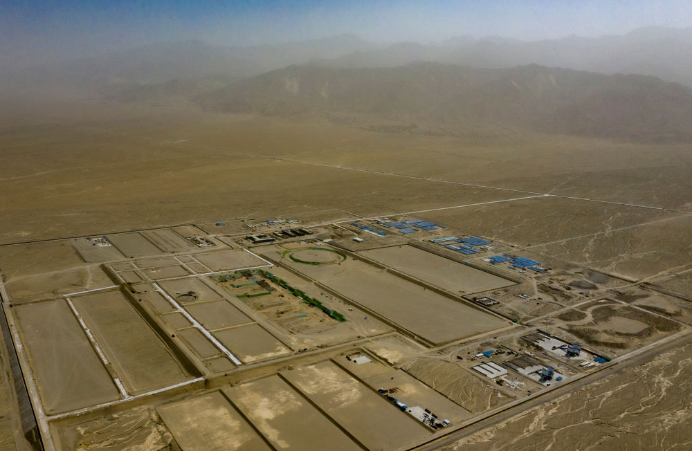9月22日在新疆巴音郭楞蒙古自治州若羌縣拍攝的中國(guó)綠發(fā)新疆中綠電若羌400萬(wàn)千瓦光伏項(xiàng)目(無(wú)人機(jī)照片)。該項(xiàng)目每年可發(fā)電69.08億千瓦時(shí),滿足南疆200萬(wàn)戶家庭用電需求,減排208.24萬(wàn)噸煤耗。