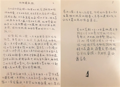 對于這個新局勢,我抱極大的信心,所以我放棄入籍了……時至今日呵!天亮了!我們中華民族百多年來受外人所旋(施)的奇恥大辱,用我們勇士的血來洗滌凈盡了!我們有了那群受盡人間所有的苦難的智識者群來領(lǐng)導(dǎo)建立人民主權(quán),建立一個新的畫(劃)時代的自由獨立的國家。
